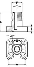 Flangia diritta maschio ORFS - interasse metrico 4 fori per viti maggiorate
