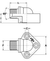 Flangia 90° maschio BSP - interasse metrico 3 fori per viti standard